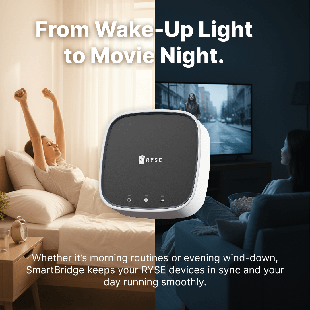 The RYSE SmartBridge add-on offers ultimate control of your retrofit smart home setup. Capable of connecting with up to 10 SmartShades and SmartCurtains at once, the RYSE SmartBridge enables many exciting features including group control, routines, and integrations with Amazon Alexa, Google Home, and Apple HomeKit. Discover endless possibilities with the RYSE SmartBridge today!